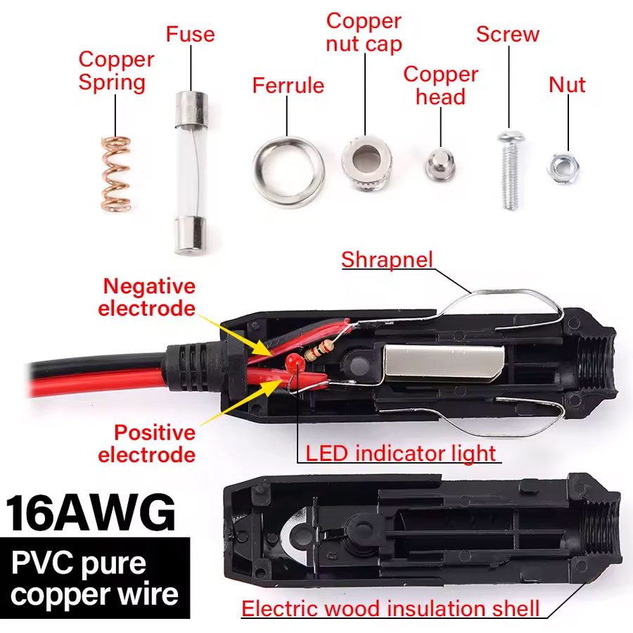 Adaptador de alambre de cobre puro de PVC de 16 AWG, con LED, resorte de cobre. Este encendedor de cigarrillos es ampliamente utilizado: para vehículos y una variedad de aparatos eléctricos, aspiradoras, ventiladores, almohadillas térmicas, lavadoras de automóviles, inversores de frecuencia, etc.