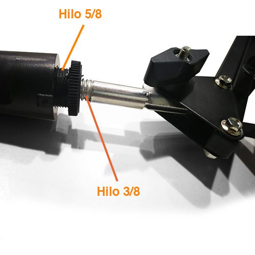 – El Atril tiene un hilo de 3/8 hilo Exterior, aqui se atornilla el shock mount (araña)