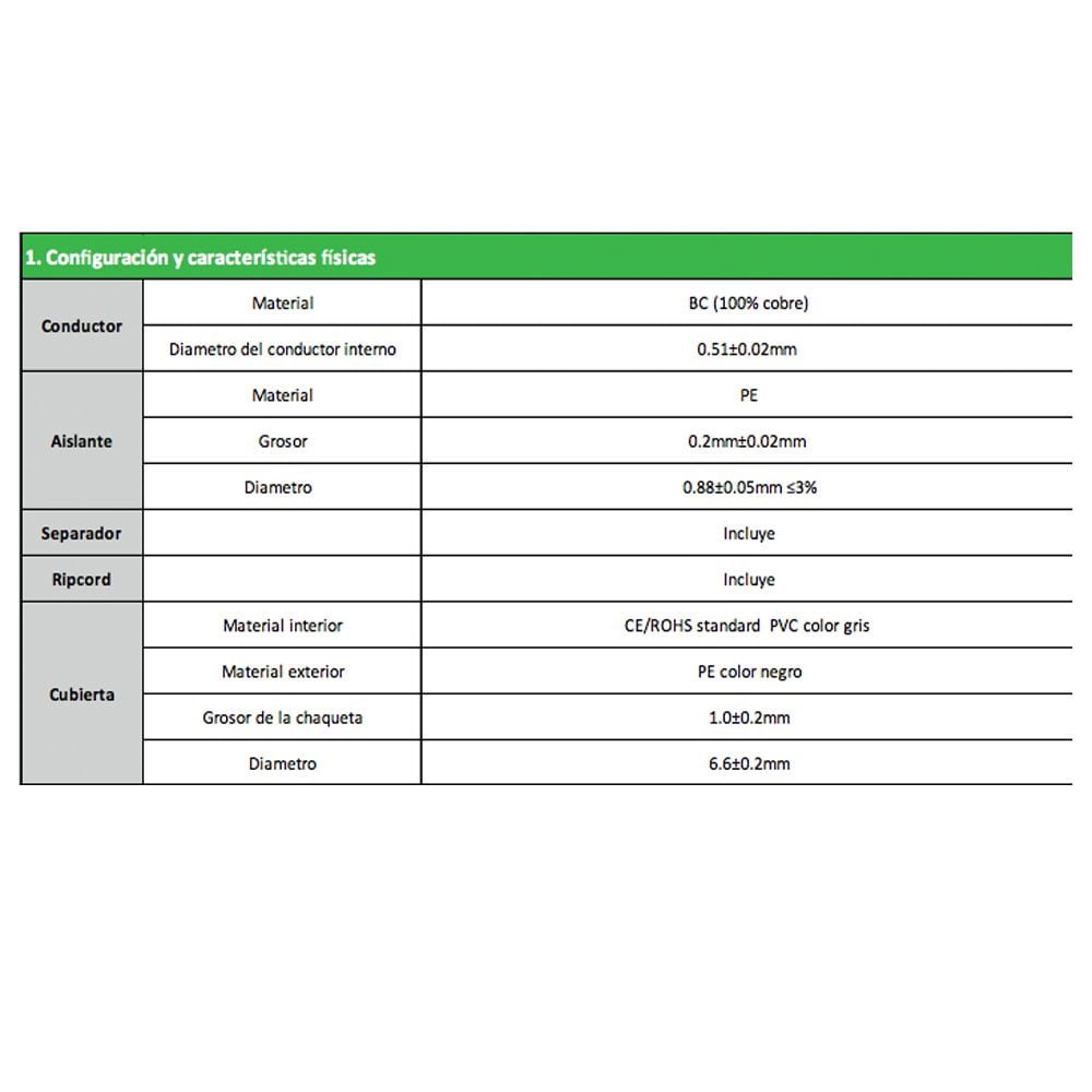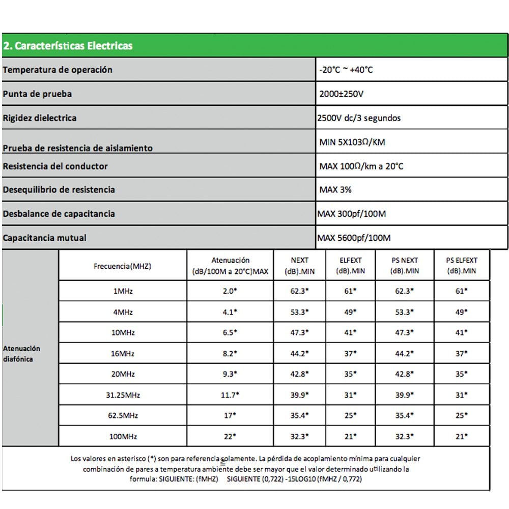 – Categoría cable de red: cat 6 / 24AWG