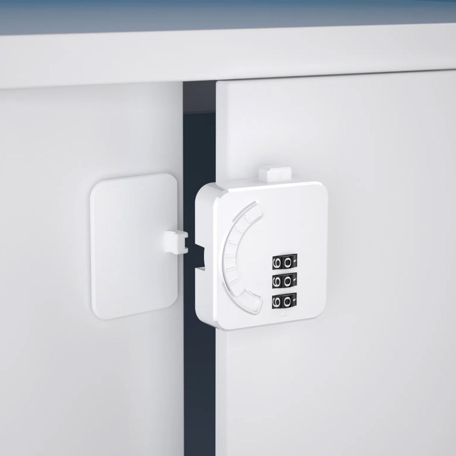 – Cerradura adhesiva / seguro para muebles con puerta