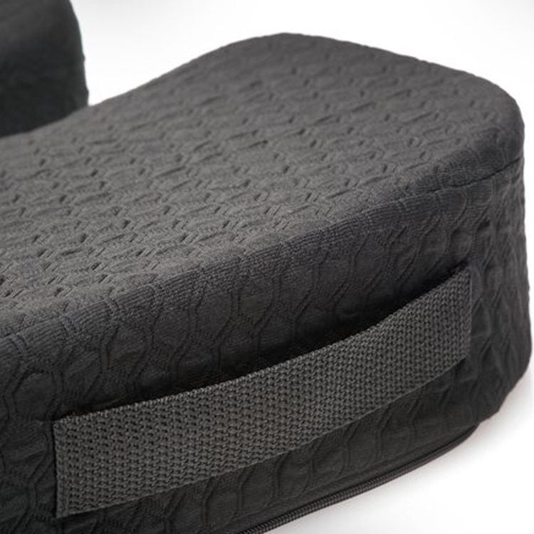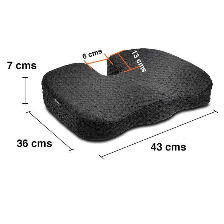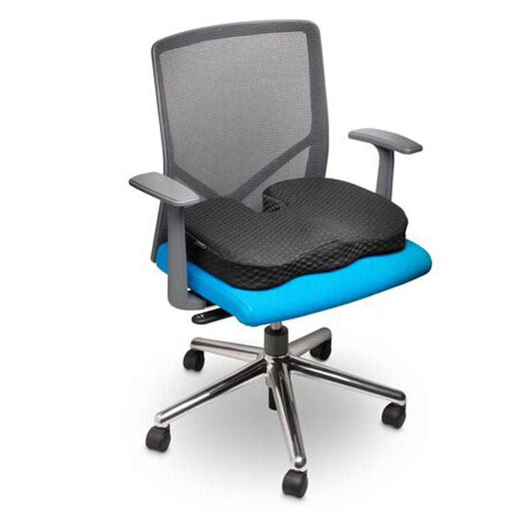 Así también, este cojín es un accesorio que no puede faltar a quienes sufren de problemas en su coxis. Posee forma de U, con el recorte especial para evitar presiones en esa zona, aliviando incluso problemas como el síntoma de la ciática, causado por algún problema en el nervio más largo del cuerpo – el nervio ciático-.