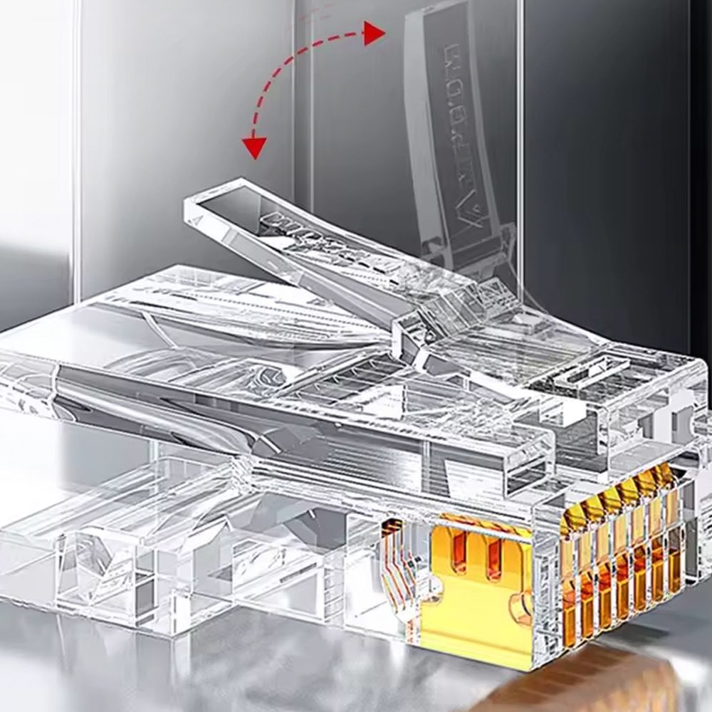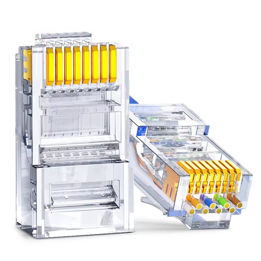 El conector RJ45 Pass Through facilita el armado de cables de red. No es necesario que emparejes los pares antes de pasarlos al conector. Sólo retiras la cubierta del cable UTP y luego introduces los cables en el conector. Luego, el exceso de cables puedes cortarlos y crimpearlos con una crimpeadora pass through.