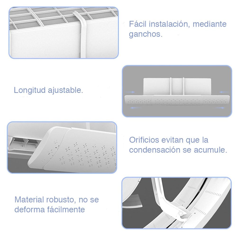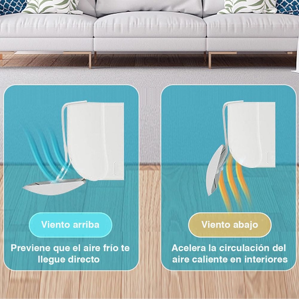 Este deflector te permite desviar el aire de tu aire acondicionado. Este deflector permite que lo utilices con aire frío o aire caliente y, además, posee longitud ajustable, adaptándose a gran parte de los aires acondicionados de muro. Así también, su sistema de sujeción es mucho más cómodo, versátil, fácil y firme, ya que se realiza a través de dos ganchos, sin necesidad de sujeciones que, con el tiempo, se despegan o no son compatibles con todos los equipos de aire acondicionado.