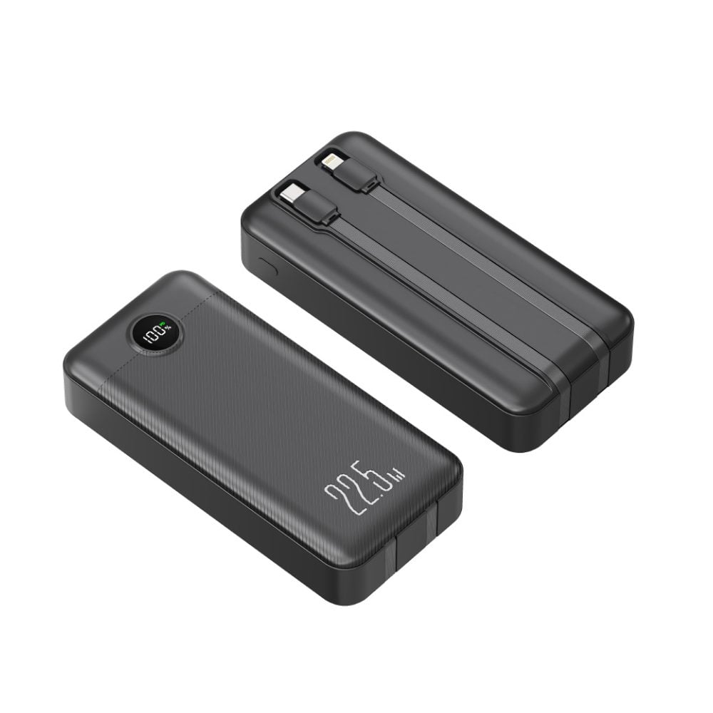 La PowerBank 20000 mAh Bestlink es tu aliada ideal cuando necesitas carga rápida, segura y siempre a mano. Diseñada con cables integrados (USB-C y Lightning), te olvidas de llevar cables extras: solo lo conectas y listo.Compatible con la mayoría de smartphones y dispositivos, ofrece 22.5W de carga rápida, ideal para recuperar batería en minutos cuando estás en movimiento.