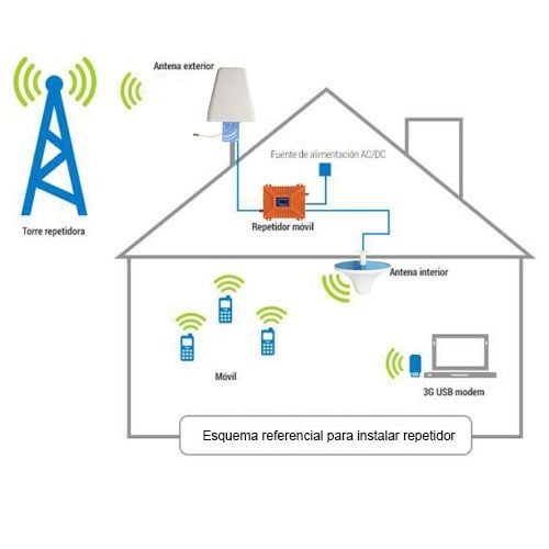 Debes instalar la antena (de exterior) donde recibes buena señal, y la otra antena (de interior) donde no llega o llega baja señal .Para que funcione, debes tener 15 metros de distancia entre la zona con buena señal y la que no tiene, para que los cables alcancen. Los cables NO se pueden extender. A veces se consigue señal en altura, entonces, antes de comprar, vale la pena subir a alturas y revisar si los celulares consiguen señal. Esa seria la ubicación final de tu antena de exterior