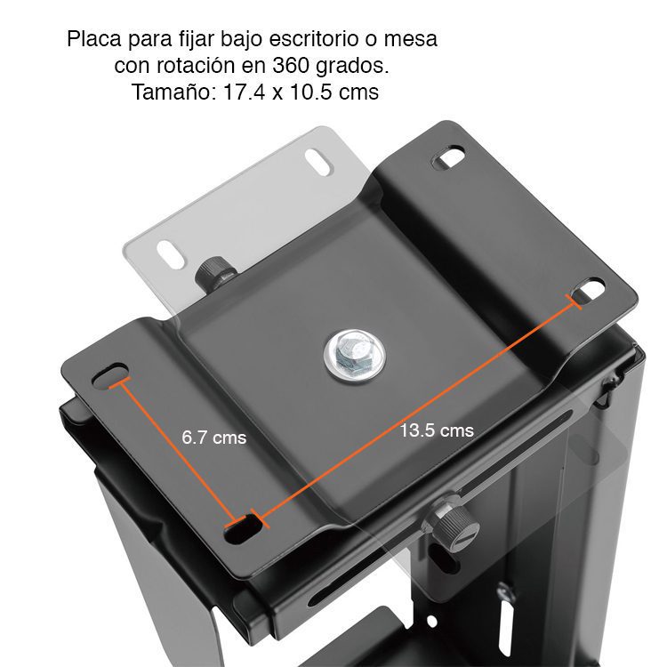 Con este soporte CPU bajo escritorio podrás colocar tu CPU o consola bajo alguna mesa, escritorio o montarla en algún muro, para así evitar que esta se llene de polvo y tener un libre acceso a la parte trasera a la hora de conectar o desconectar cables.